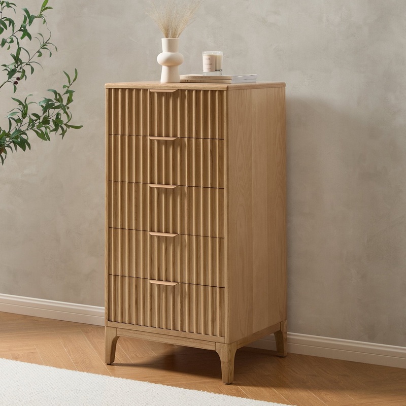 Elena Ash Slim 5 Drawer Chest – Light Wood