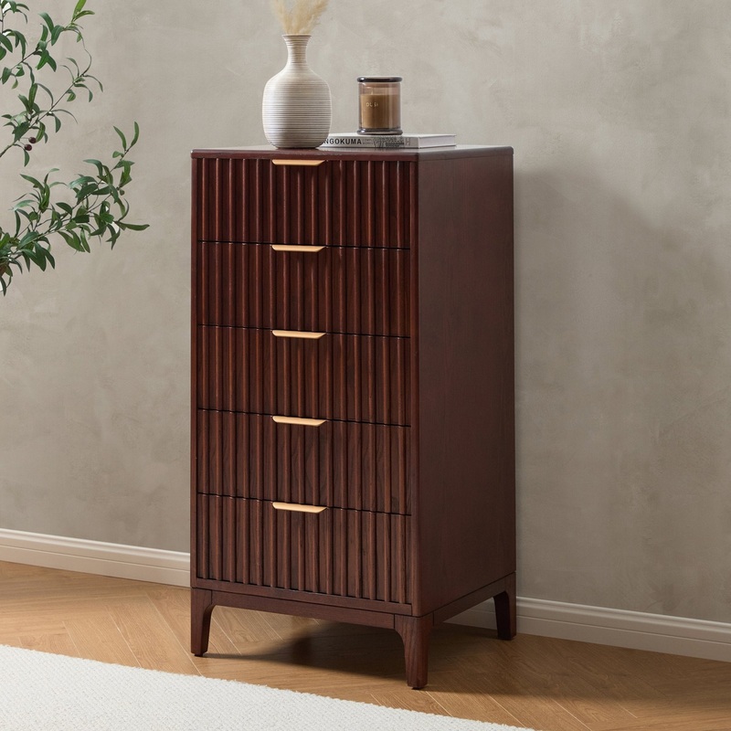 Elena Ash Slim 5 Drawer Chest – Mahogany