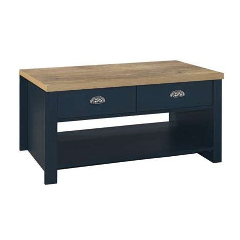 Highgate 2 Drawer Coffee Table – Navy & Oak