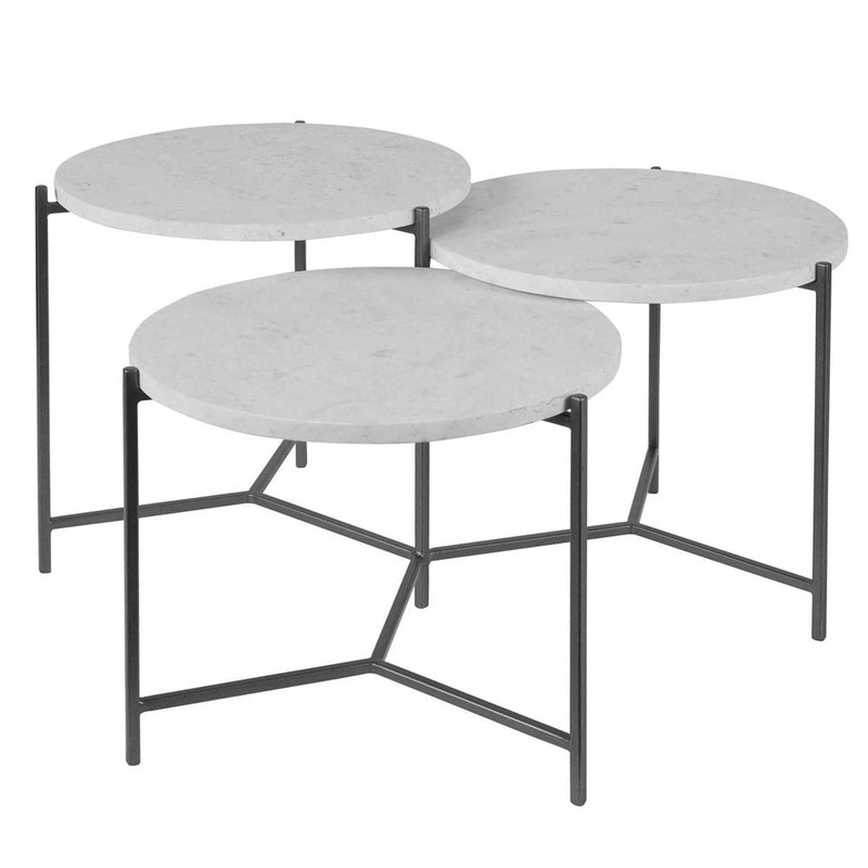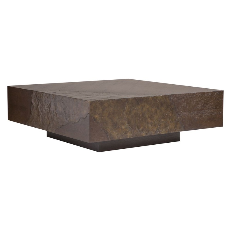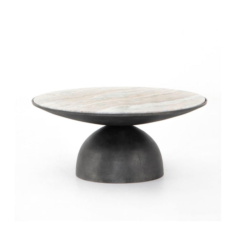 Corbett Coffee Table: Polished Black Marble – Hammered Grey