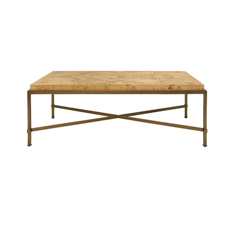 Antique Brass Frame Coffee Table With Thick Top In Burl Wood