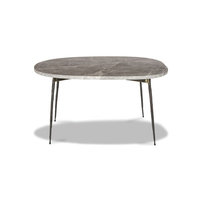 Tuktuk Small Coffee Table Grey Marble Black Hammered Iron Legs