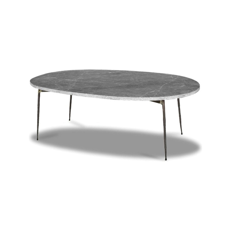 Tuktuk Large Coffee Table Grey Marble Black Hammered Iron Legs