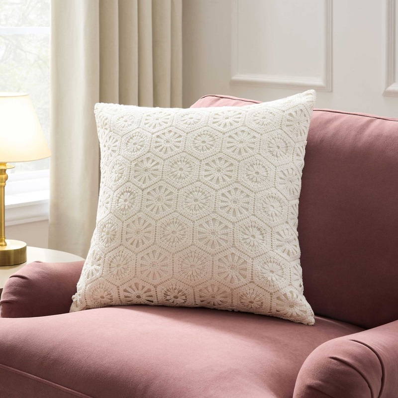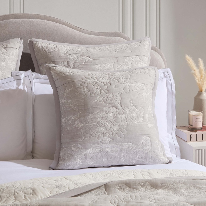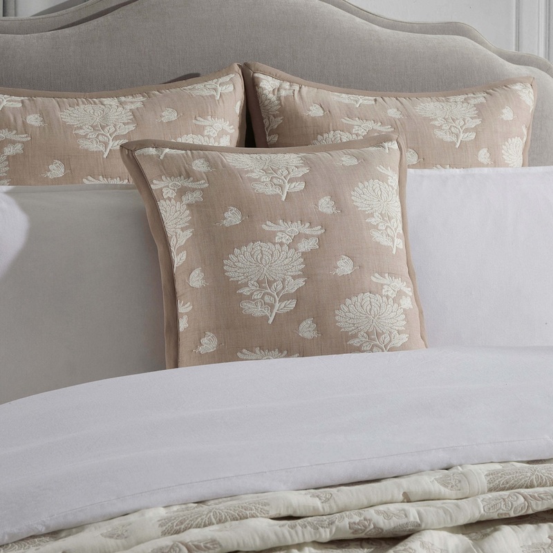 Chrysanthemum Embroidered Cushion Cover – Taupe