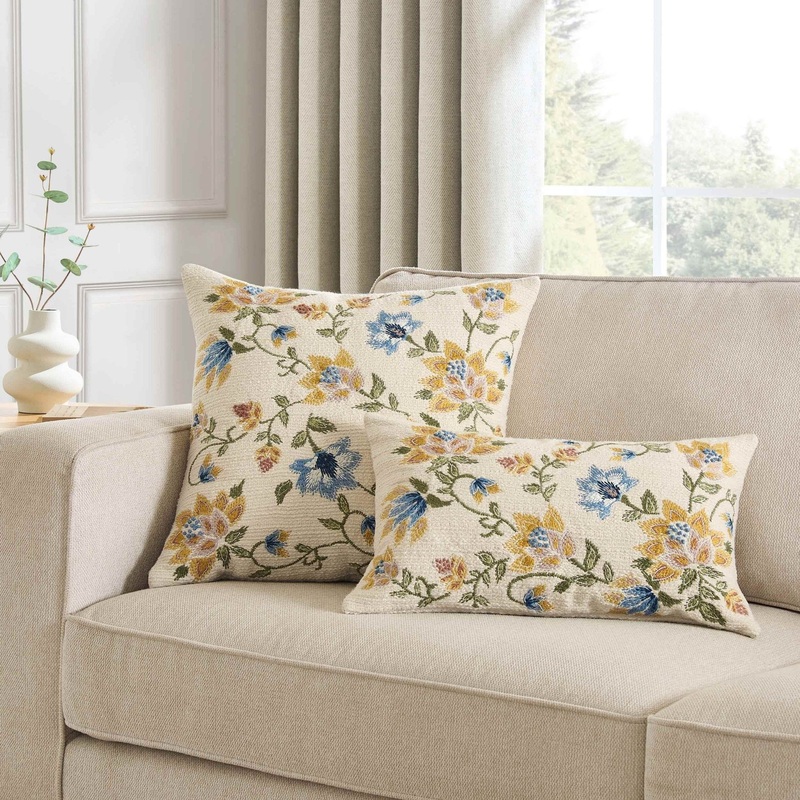 Floral Jacquard Embroidered Sofa Cushion Cover – Blue