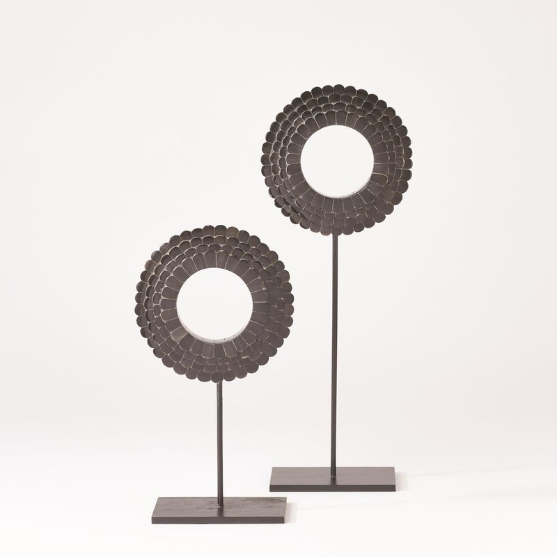 Four Layer Horn Scalloped Mounted Ring-Black-Sm