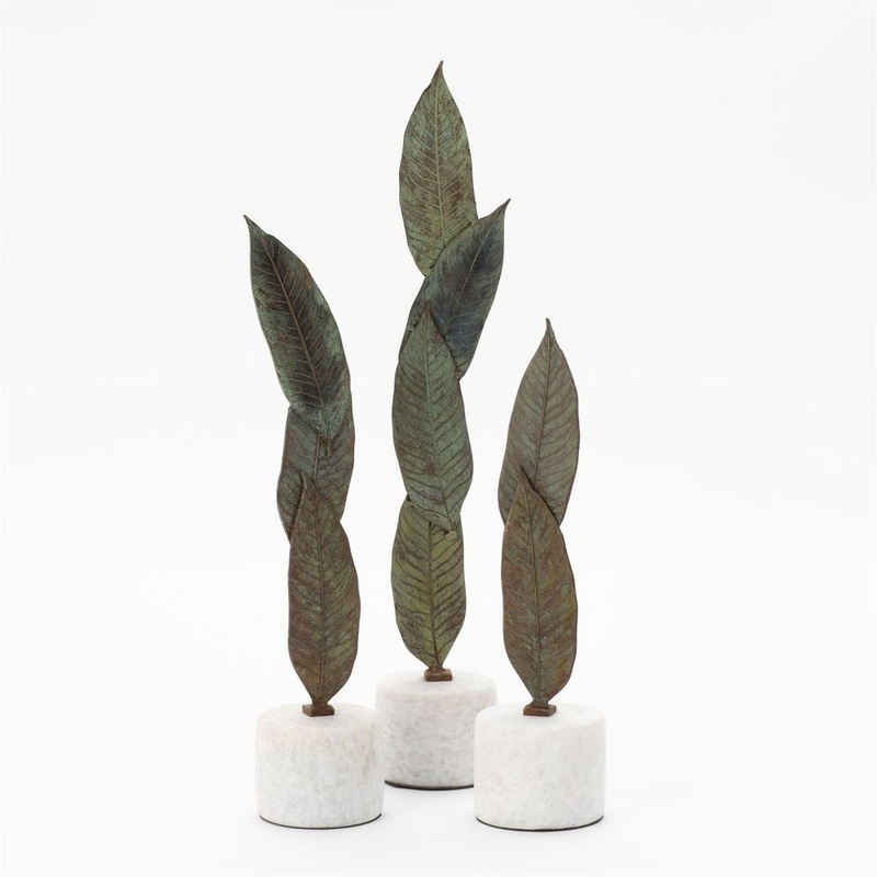 Falling Leaves Sculpture-Antiqued Brass Finish on White Marble-Med