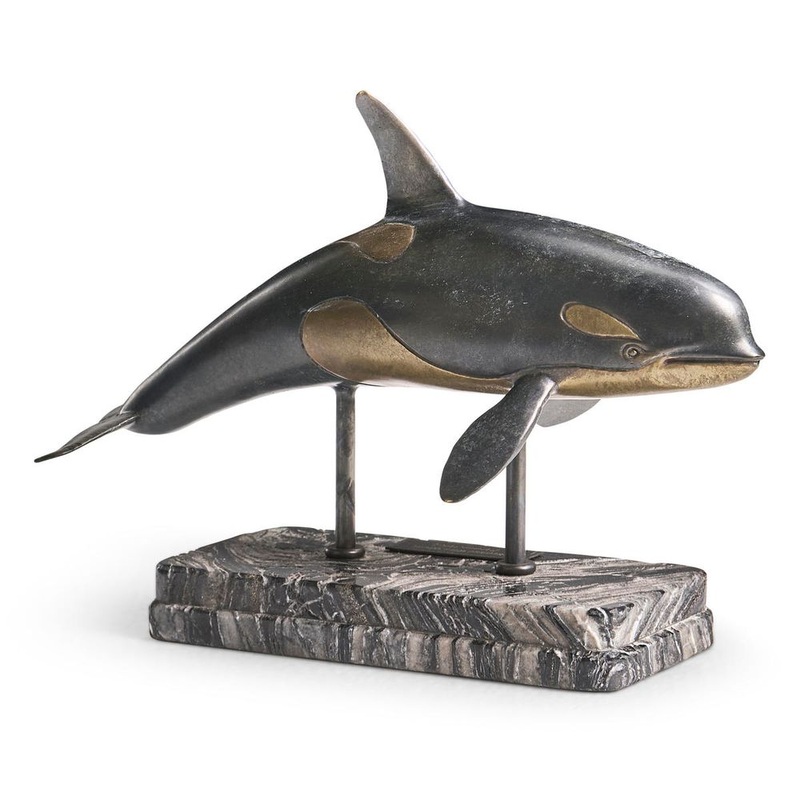 Killer Whale Bronze Statue with Marble Base