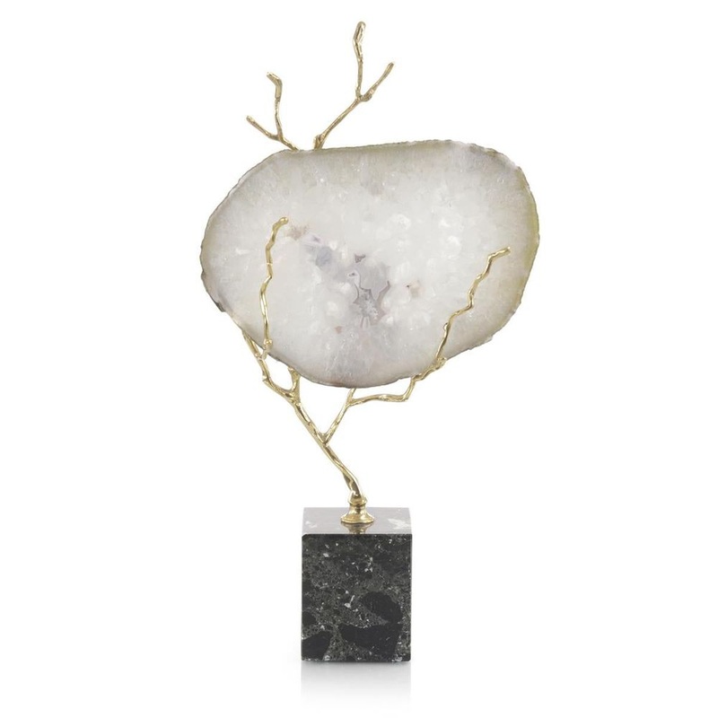 Whitt Cast Metal Tray In Antique Brass Finish With Agate Handles