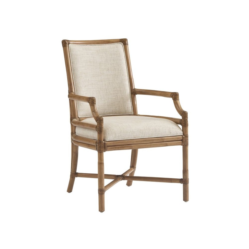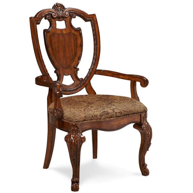 Old World Shield Back Arm Chair with Fabric Seat (Purchase in qty of 2 required, priced individually) – Brown, Beige