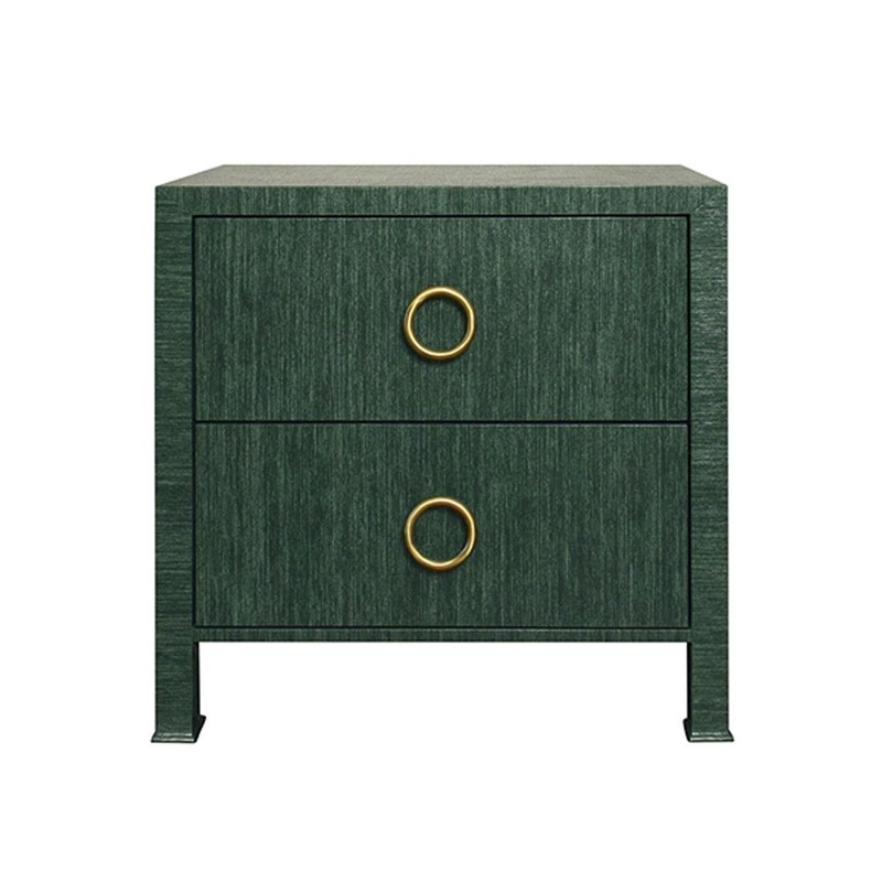 Edelman Two Drawer Side Table In Dyed Green Grasscloth