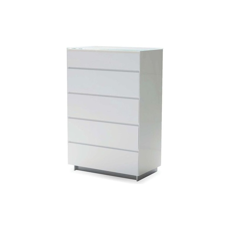 Savvy Chest 5-Drawer White High Gloss / Glass Top / Soft Closing Drawers
