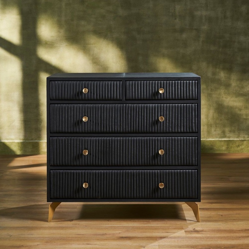 Stanford Five Drawer Leather Wrapped Chest – Black