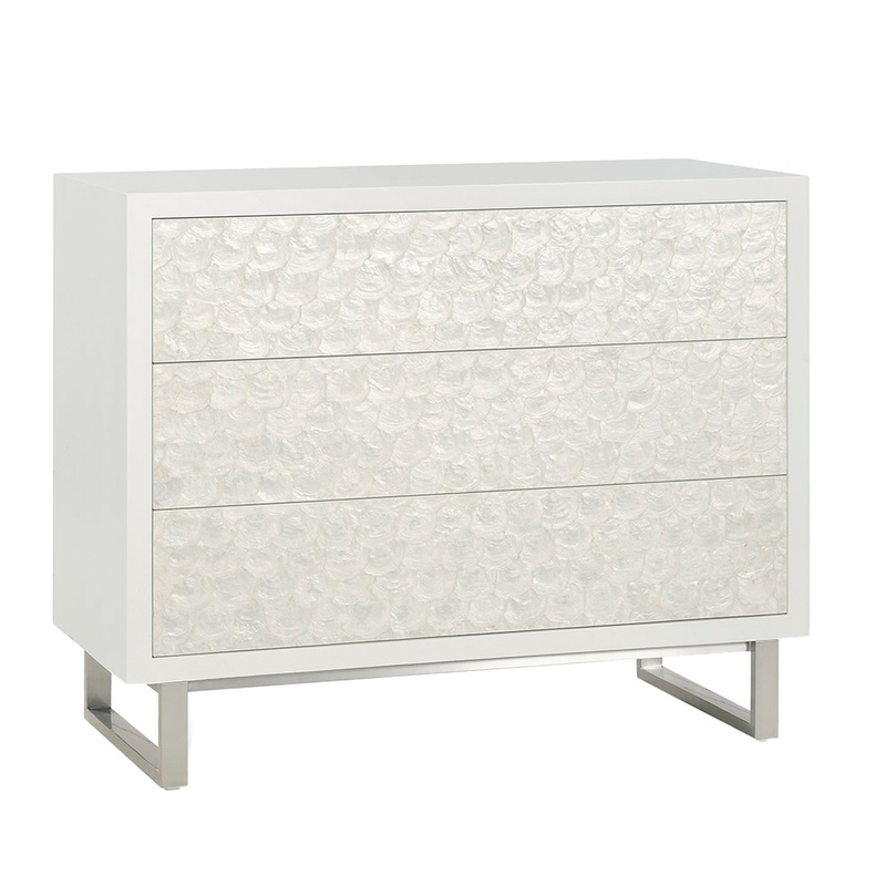 Cassius 8 Drawer Chest – White Natural White / Champagne Silver