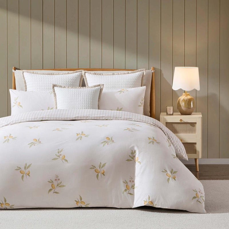 Lucie 100% Cotton Lemon & Check Reversible Duvet Cover & Pillowcase Set – Multicoloured