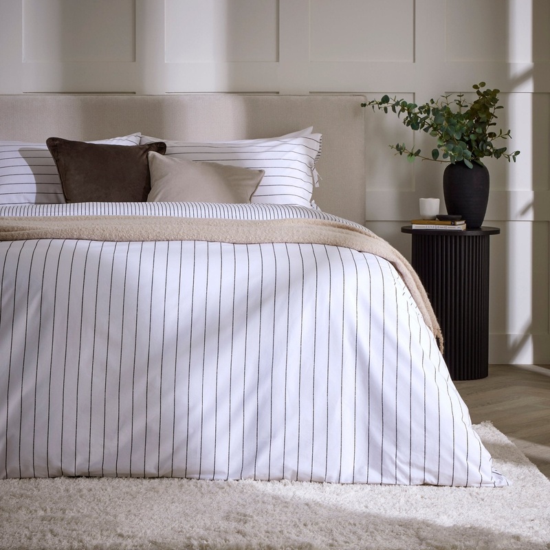 Saffi Stripe Jacquard 200 Thread Count Duvet Cover & Pillowcase Set – White/Grey