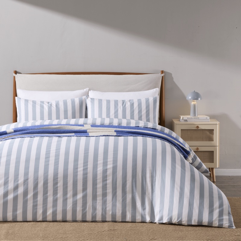 Livia 100% Cotton Wide Printed Stripe Duvet Cover Set – Slate Blue