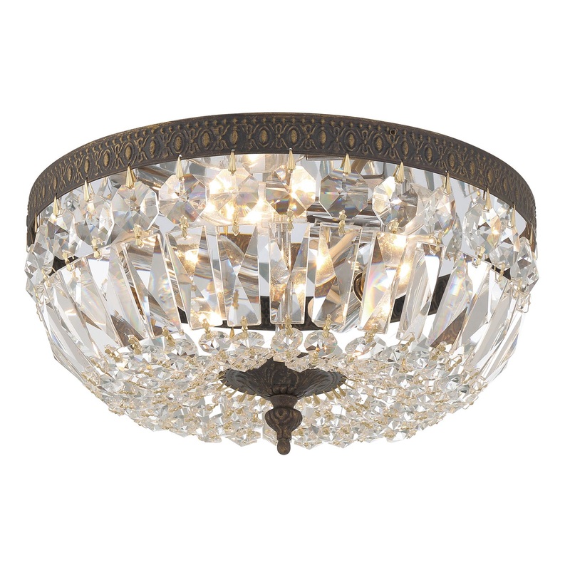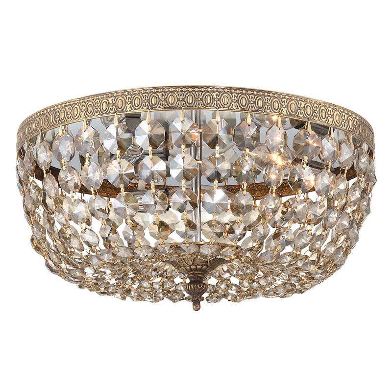 Crystorama 3 Light Clear Italian Crystal Olde Brass Flush Mount