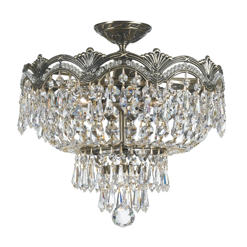 Majestic 3 Light Swarovski Strass Crystal Historic Brass Semi Flush Mount