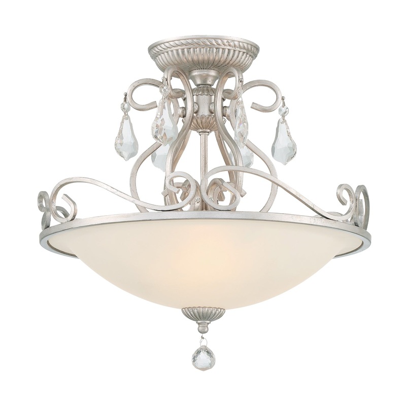 Ashton 3 Light Hand Cut Crystal Olde Silver Semi Flush Mount