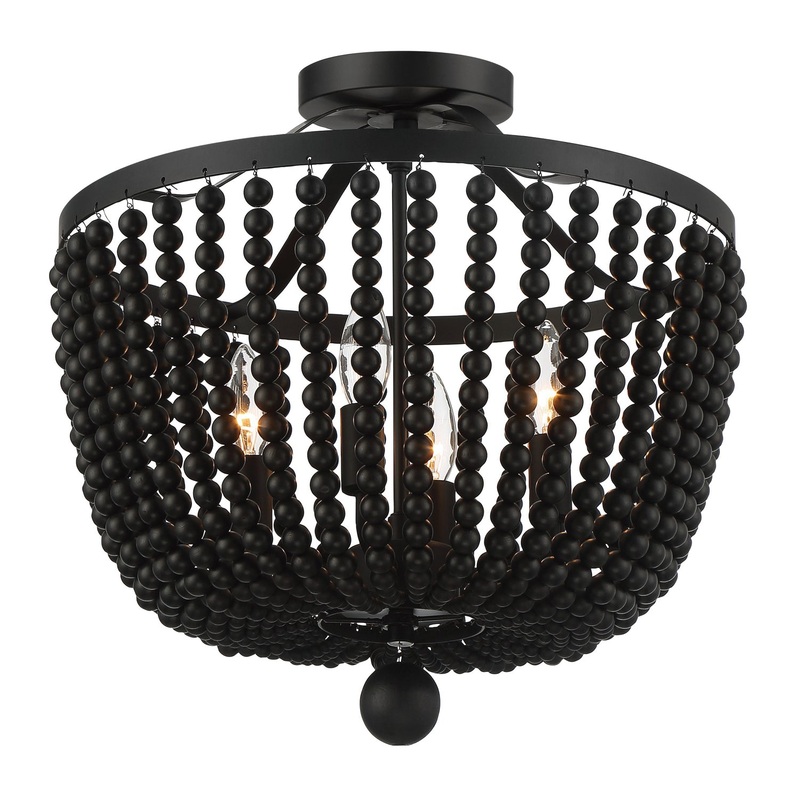 Rylee 4 Light Matte Black Frosted Beads Semi Flush Mount
