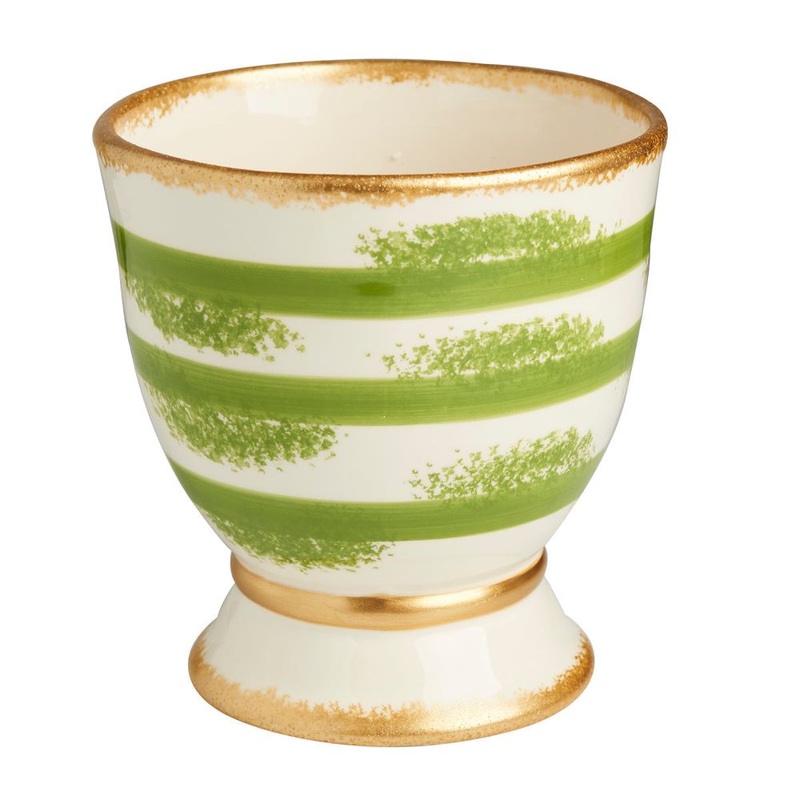 Savoy Green/White Striped Cachepot, Small Set of 2