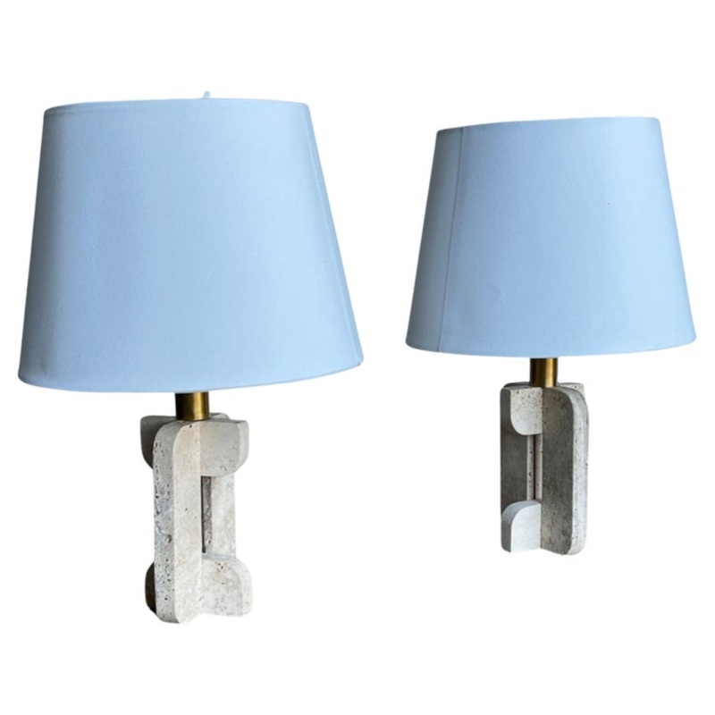 Italian Travertine and Brass Table Lamp by Fratelli Mannelli, 1970s