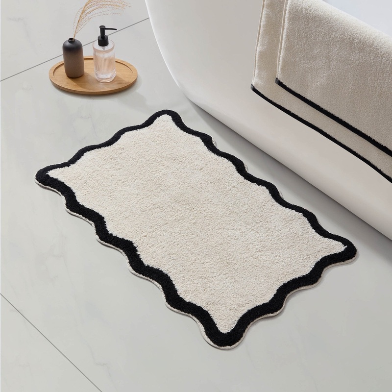 Kos Scalloped Bath Mat – Black