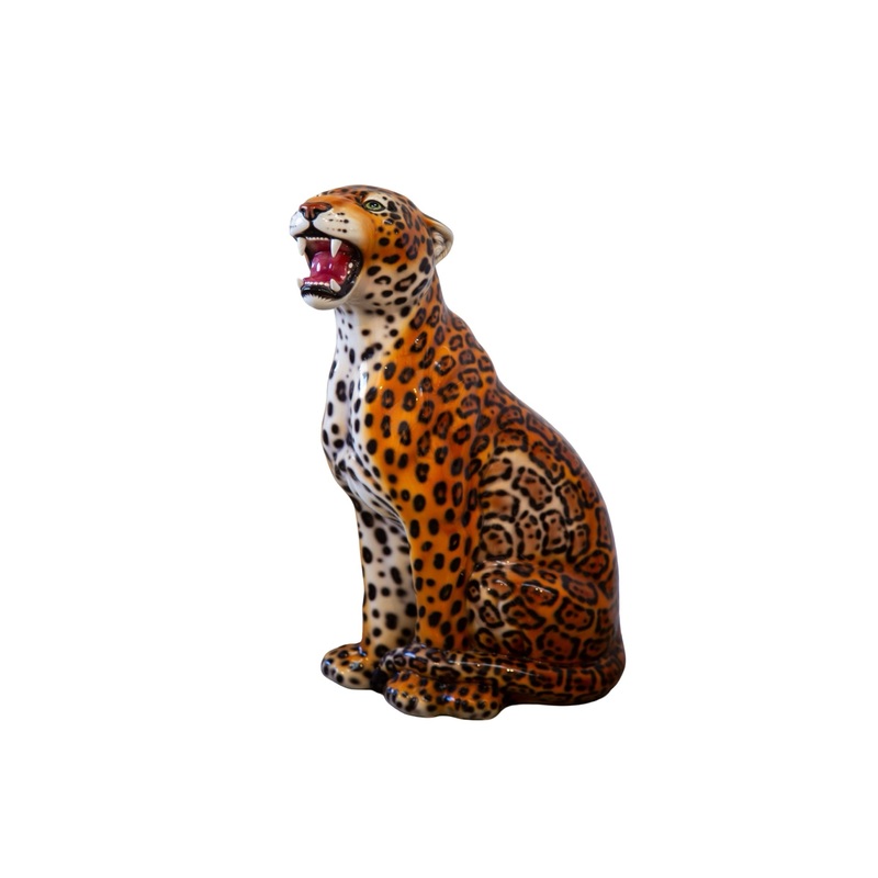 Set of Two Mid-century Italian Hand-painted Ceramic Leopard Statue