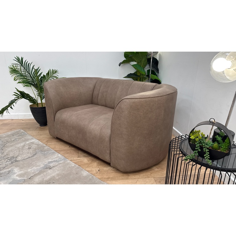 Sofology The Fitzrovia Leather Loveseat in Relaxed Natural Grain Taupe Mix With Trim