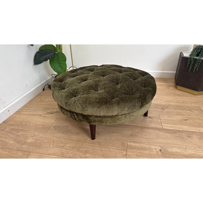 Sofology The Gatsby Footstool in Luxury Chenille Olive All Over