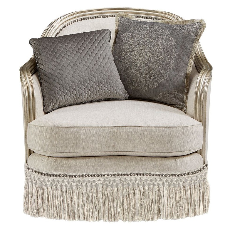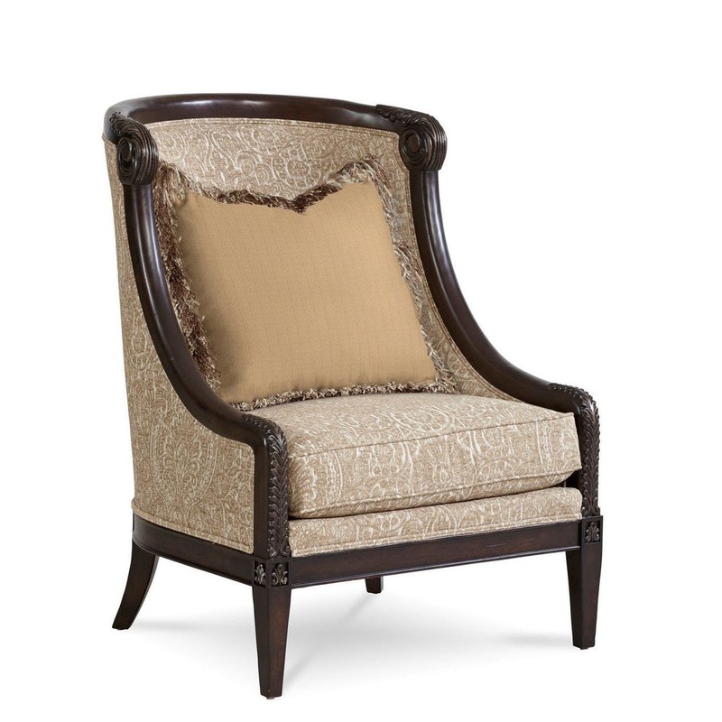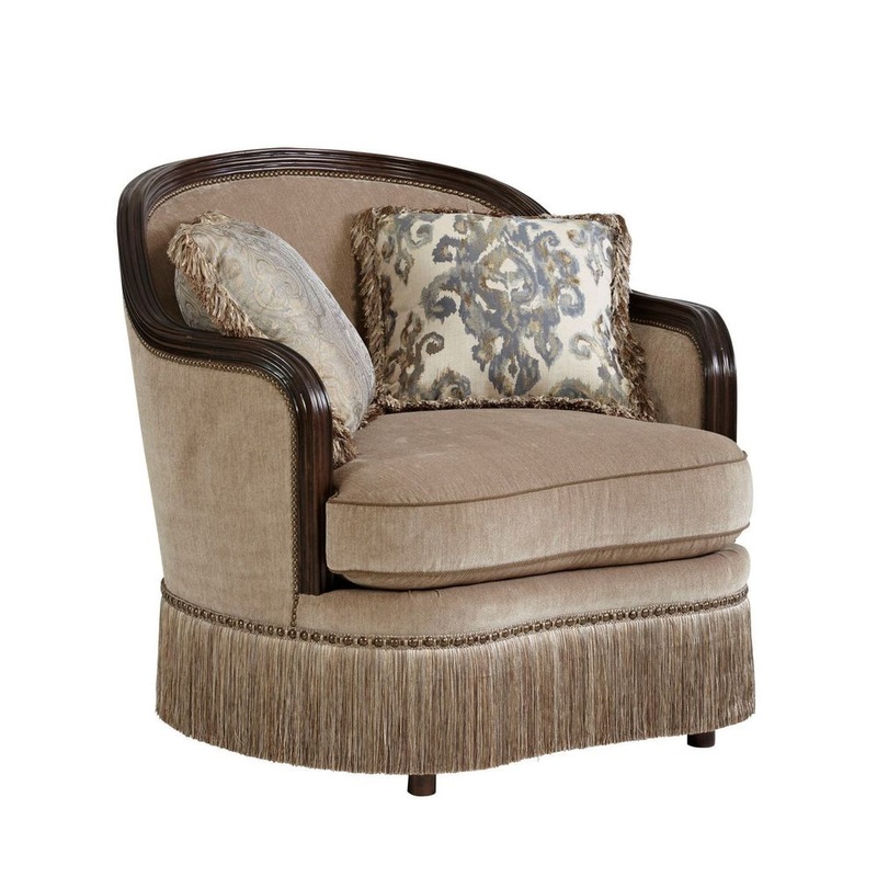 Giovanna Azure Carved Wood Accent Chair – Brown, Beige