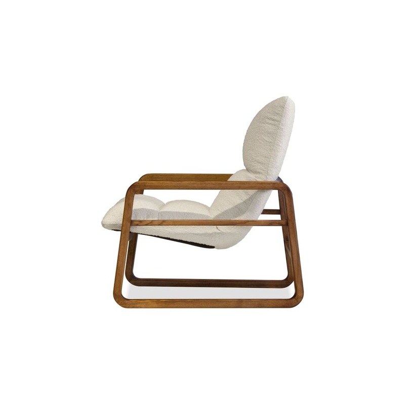 Hans Lounge Chair Cream Boucl Fabric Solid Ash Wood Frame In Walnut Stain