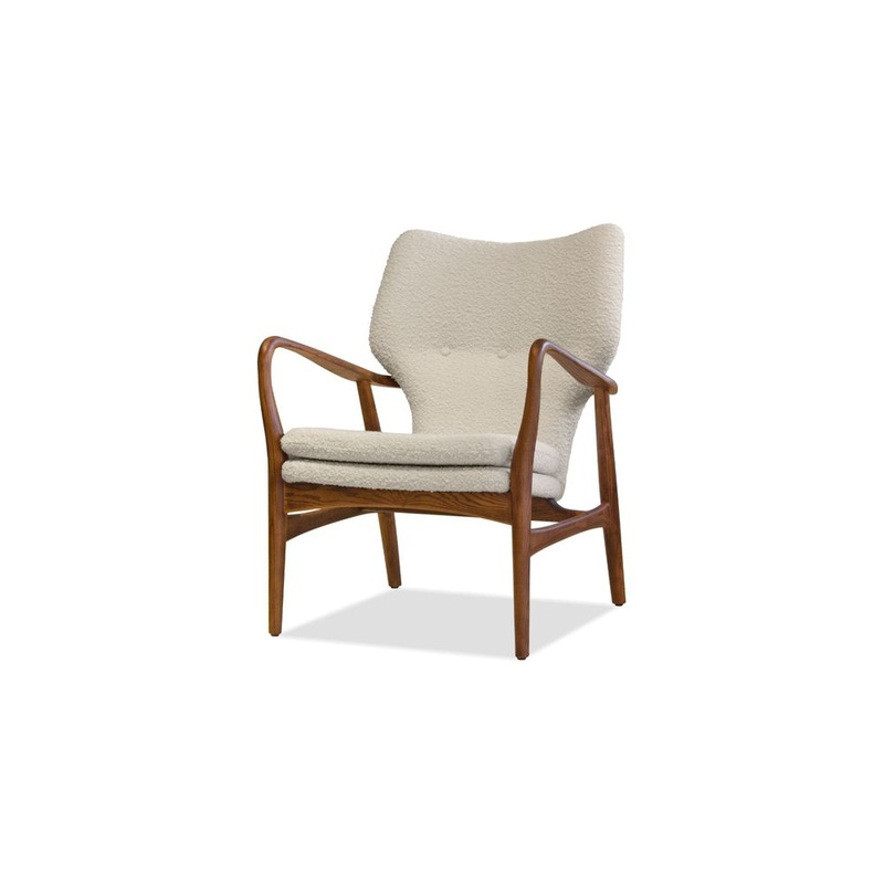 Ingrid Lounge Chair Cream Boucle Fabric Ash Frame In Walnut Finish