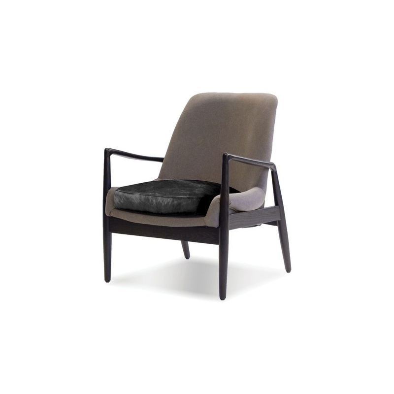 Reynolds Lounge Chair Ash Grey Seat, Black Leather Seat Cushion / Black Ash Wood Frame