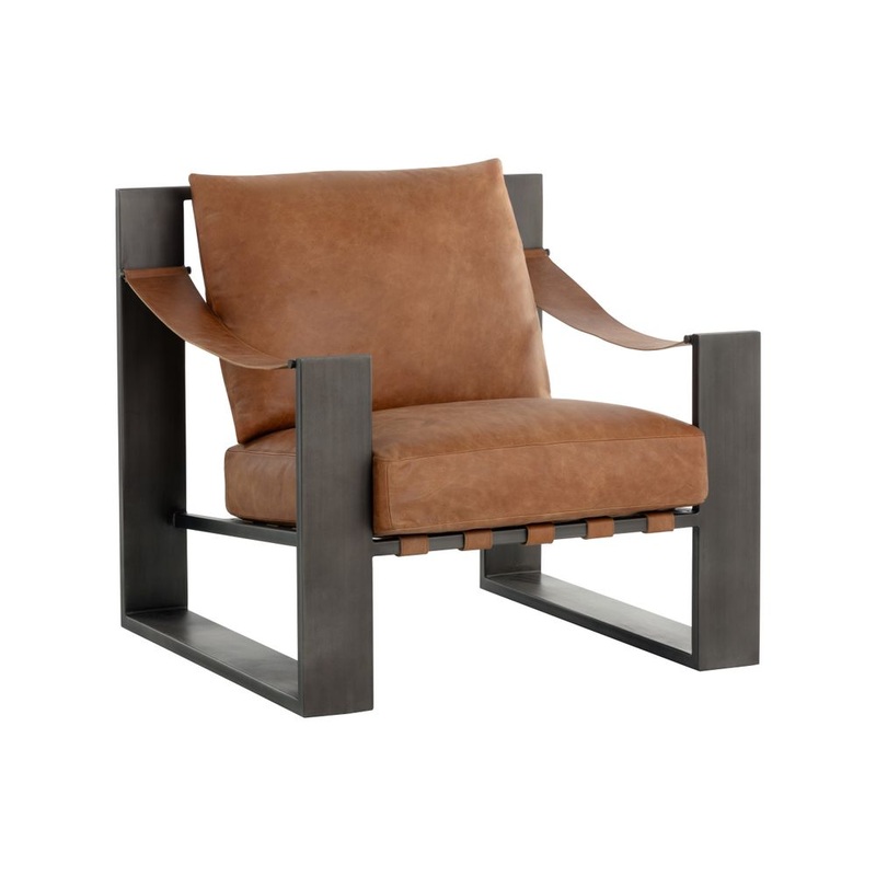 Berke Lounge Chair – Gunmetal – Tan Leather