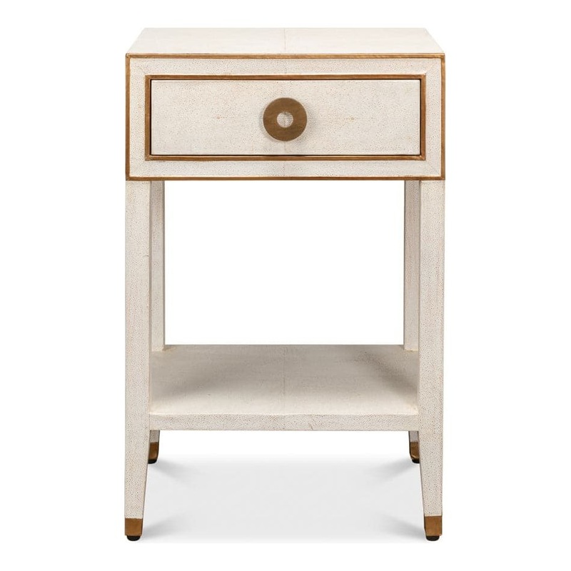 Gabriella 1-Drawer Shagreen Nightstand Osprey White Finish