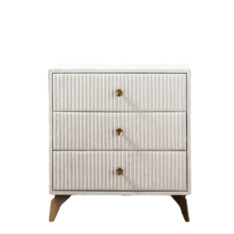 Stanford Leather Three Drawer Nightstand – White