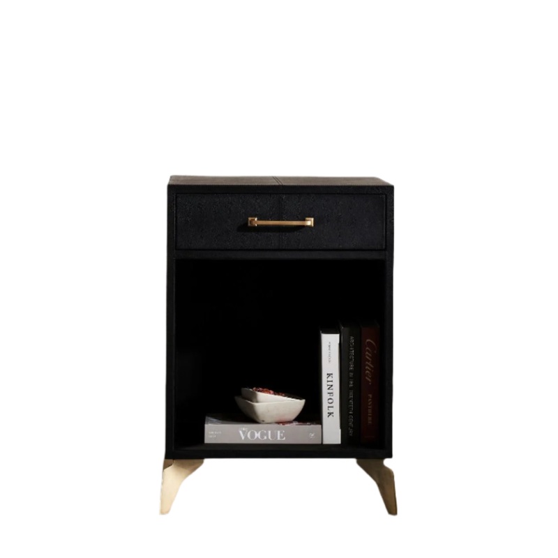 Berkeley Single Drawer Leather Wrapped Side Table – Black