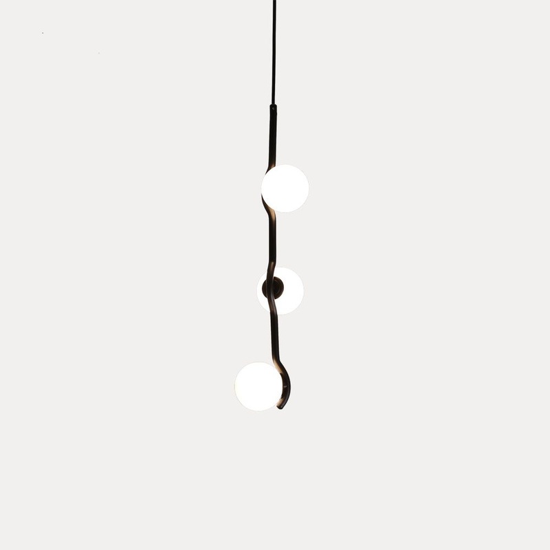 Pluto Pendant Lamp White Glass Black Powder Coated Frame