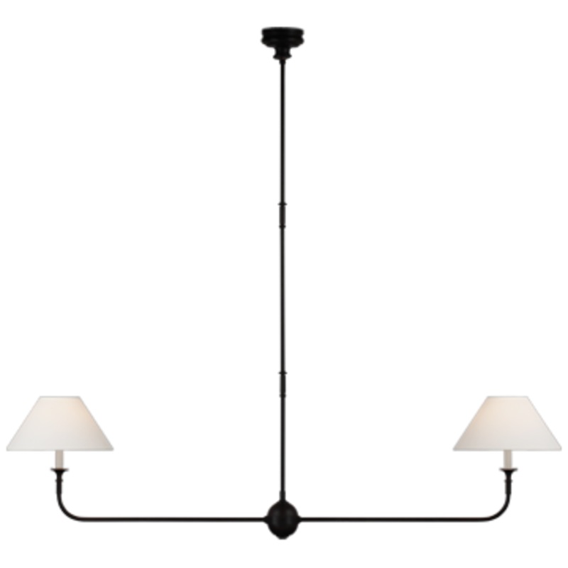 Piaf Large Two Light Linear Pendant Aged Iron And Ebonized Oak With Linen Shades