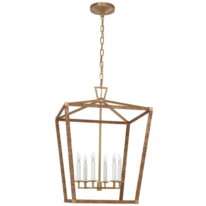 Darling Wrapped Lantern Antique-Burnished Brass and Natural Rattan
