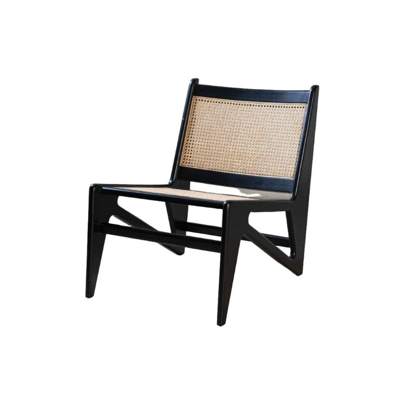 Jeanneret Kangaroo Armless Lounge Chair with Hand Caned Seat – Rental Price/Week Black