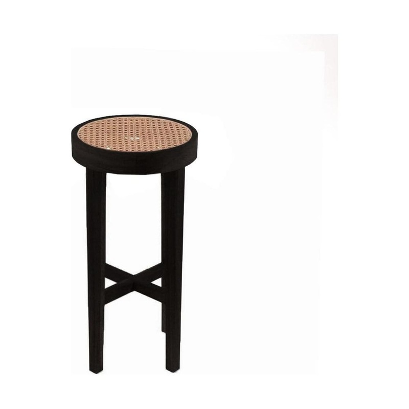 Jeanneret Round Bar Stool with Cane Seat – Rental Price/Week Black