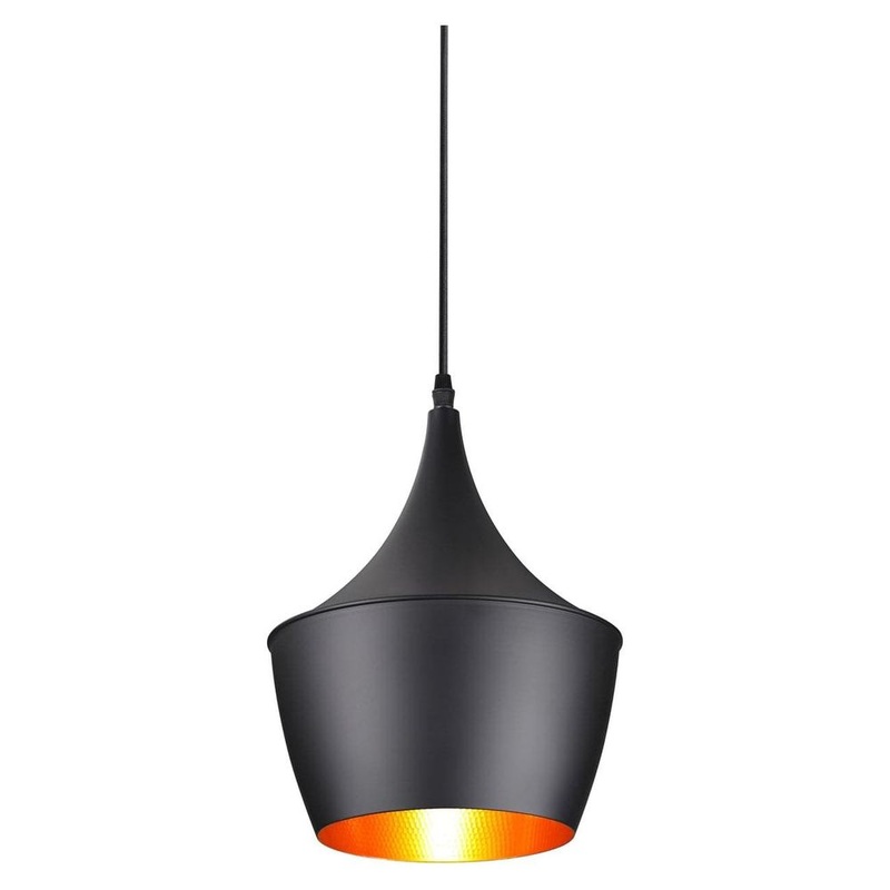 Beat Light Tall Cone Pedant – Black with Hammered Gold Interior – Rental Price/Week