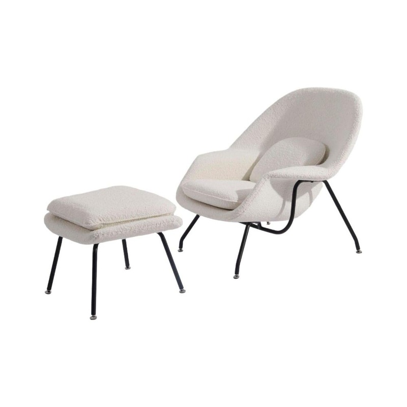 Womb Chair and Ottoman – Rental Price/Week Off White Boucle / Black Frame