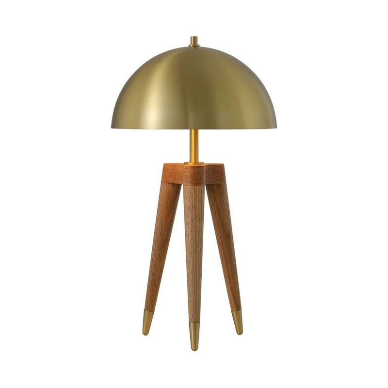Brass Dome Table Lamp with Wooden Tripod Base – Rental Price/Week