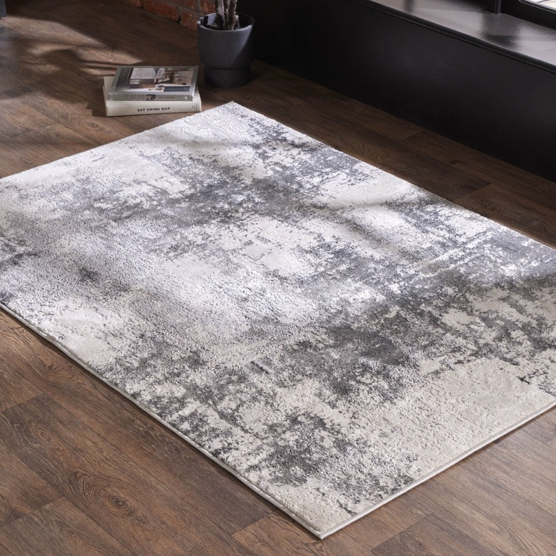 Jura Abstract Silver/ Ivory Area Rug (9’2″X11’9″)
