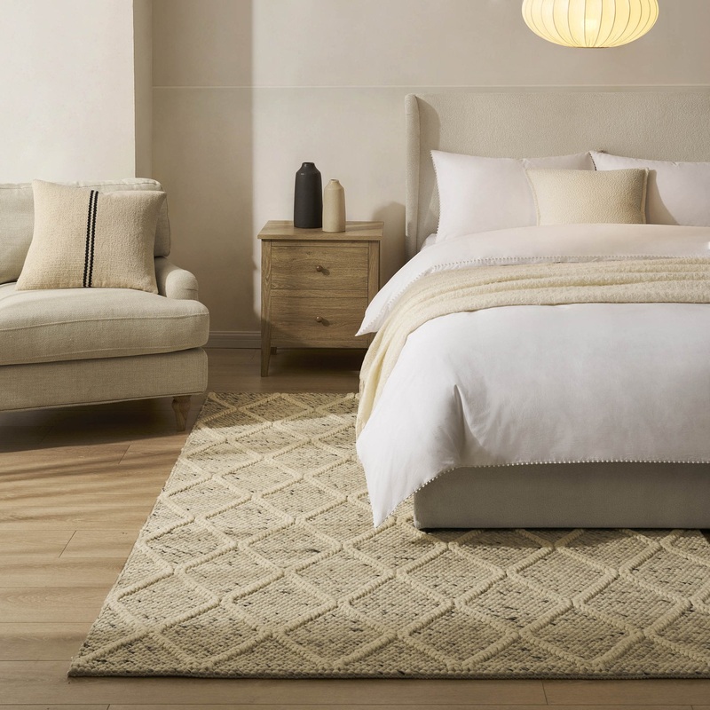 Leia Contrast Wool Plait Rug – Ivory/Grey