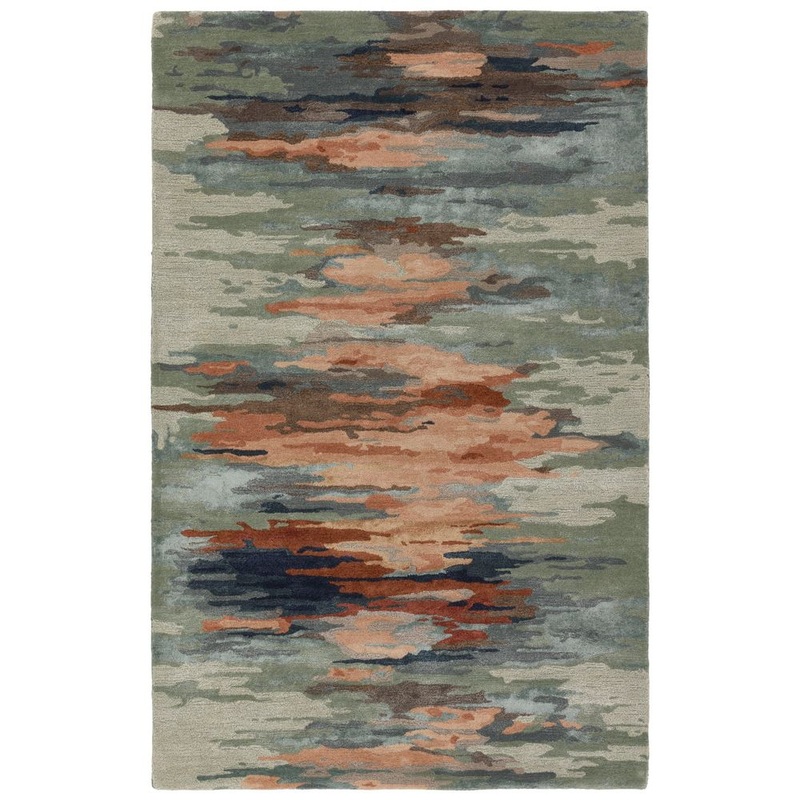 Loire Handmade Abstract Sage/ Peach Area Rug (5’X8′)